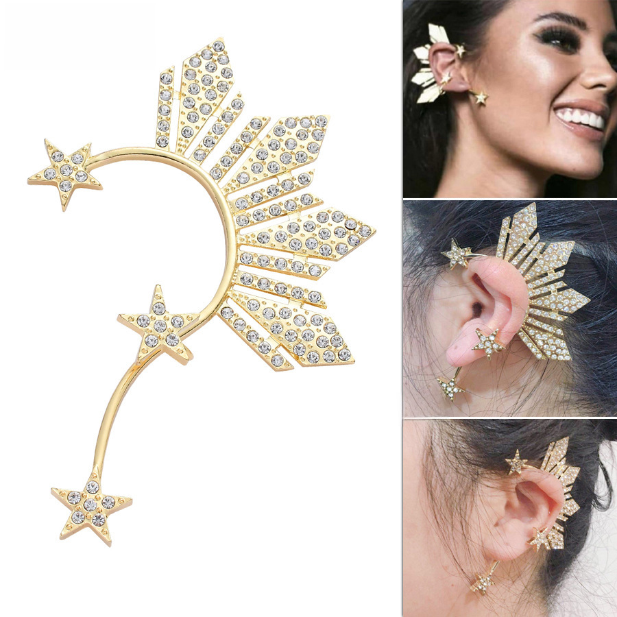 الأزياء الأوروبية والأمريكية الإبداعية والمجوهرات فلاش الماس الذهب النجوم الخماسية من جانب واحد دون ثقوب الأذن الأقراط الأقراط الأقراط مع الملحقات