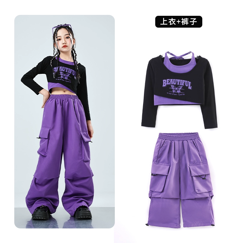 ملابس رقص الشوارع للأطفال، ملابس أداء رقص الجاز للفتيات، أداء نموذجي، أكمام طويلة دوبامين عصرية