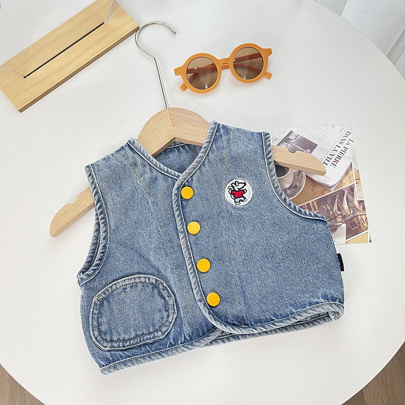 سترة أطفال ملابس خارجية للربيع والخريف على الطراز الغربي سترة كتف من قماش الدنيم غير رسمية مناسبة للربيع