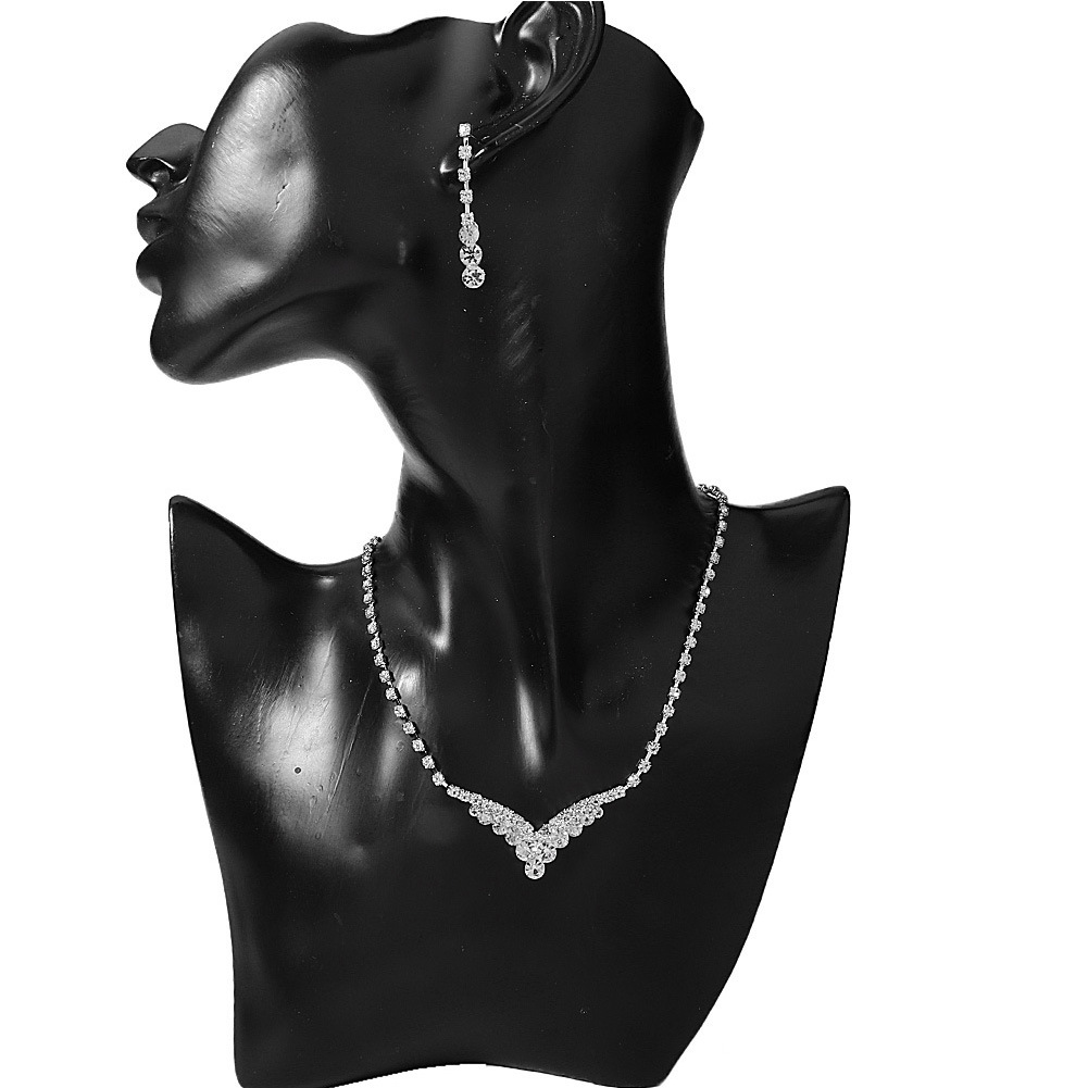 مجموعة مجوهرات العروس الكورية لعام 2021 من حجر الراين اللامع على شكل حرف V مجوهرات العروس الماسية الكاملة مكونة من قطعتين قلادة للنساء