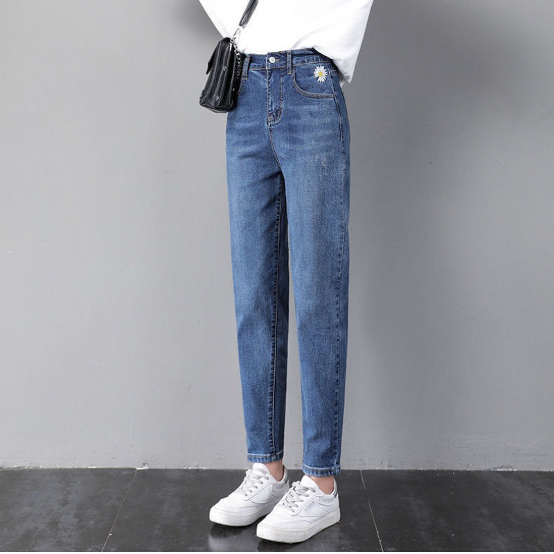 سراويل دينم هارلان النسائية للخريف فضفاضة بمقاسات كبيرة سراويل جزر عالية الخصر وصل حديثًا لعام 2024 سراويل توري مطرزة على الطراز الكوري