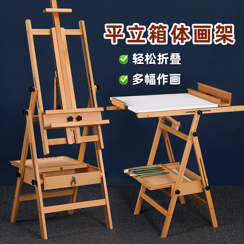 حامل لوحة رسم خشبية للأطفال قابلة للطي للطلاب الفنيين مع درج رسم زيتي خشبي مسطح