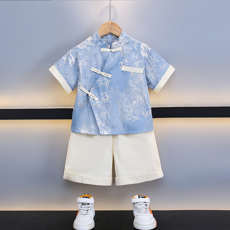 بدلة الأولاد Hanfu الصيفية Guofeng للأطفال على الطراز الصيني الجديد 2024 فستان جديد للرجال الكنز بعمر سنة بدلة يونغ ماستر تانغ