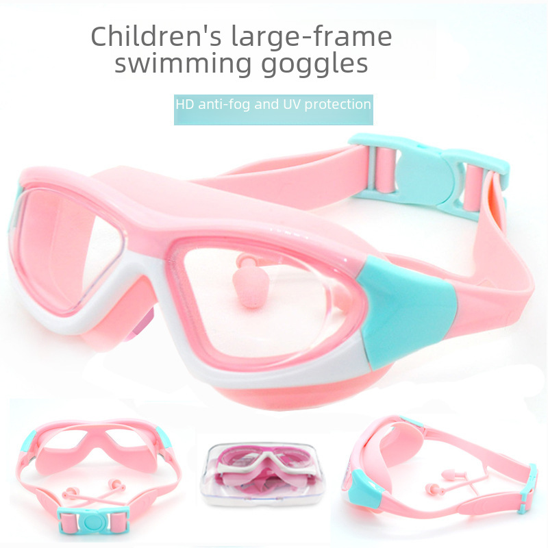 HD نظارات السباحة للأطفال الأولاد والبنات نظارات السباحة المضادة للضباب نظارات إطار كبير مريحة سيليكون قطعة واحدة سدادة الأذن 5021