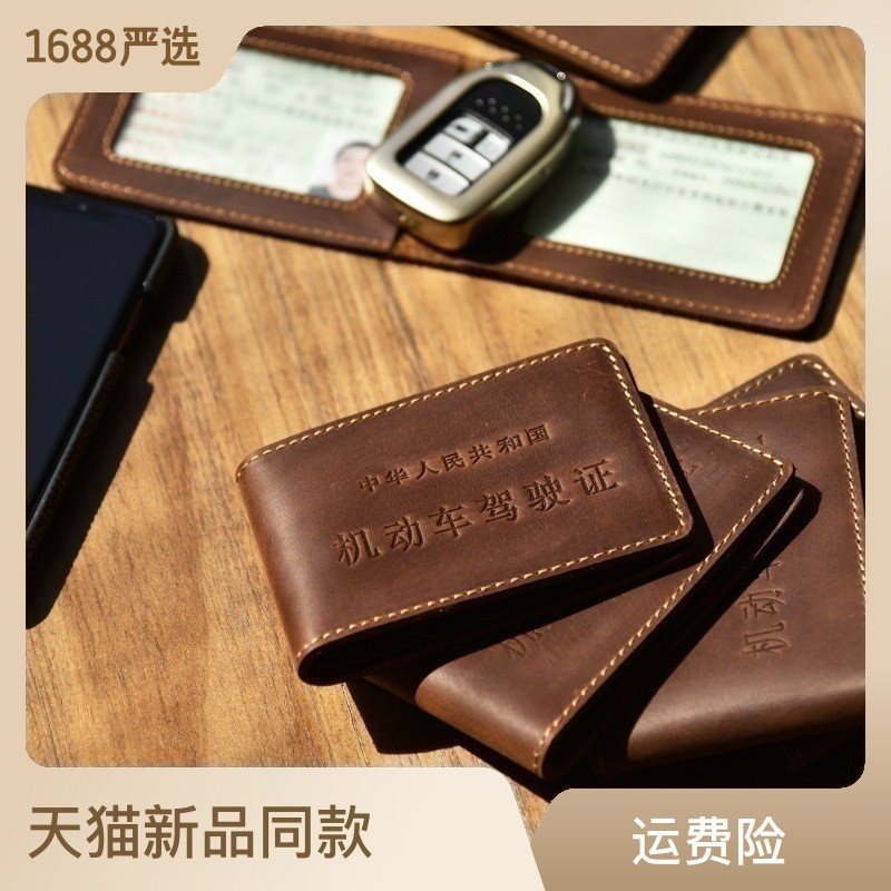 الطبقة الأولى من جلد البقر المجنون ذو الطراز القديم من جلد البقر لرخصة قيادة السيارة، حافظة بطاقات بسيطة من جلد البقر مقاومة للاهتراء