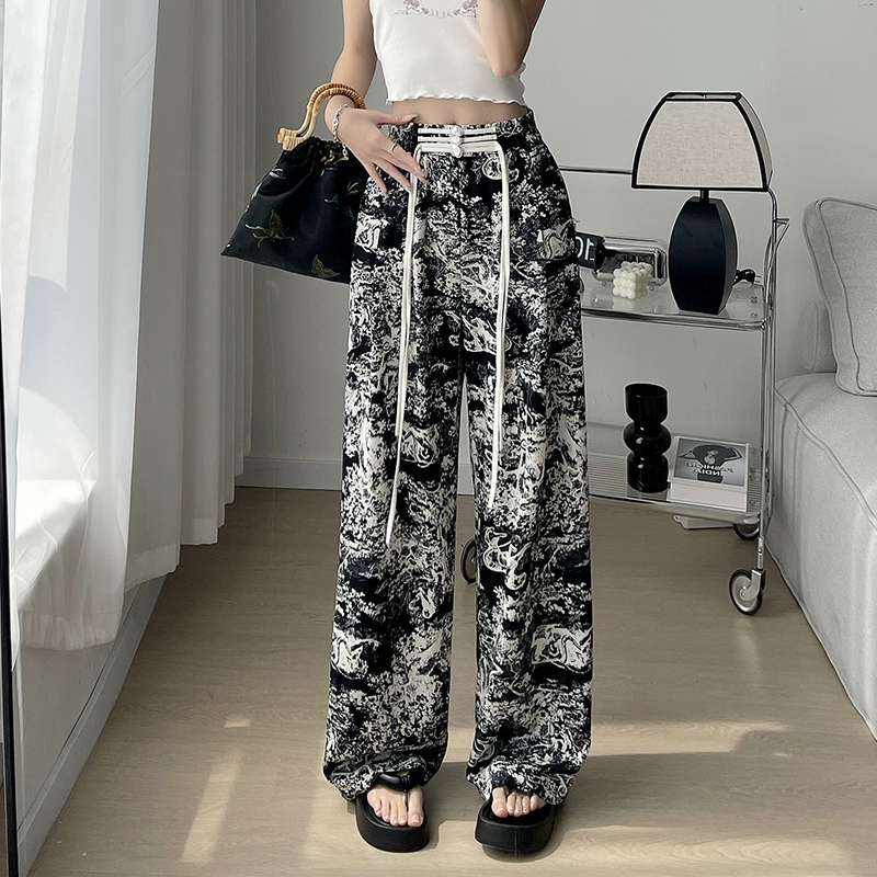 النمط الصيني حجم كبير ارتفاع مخصر Drapey الدهون MM زر القرص السراويل عارضة