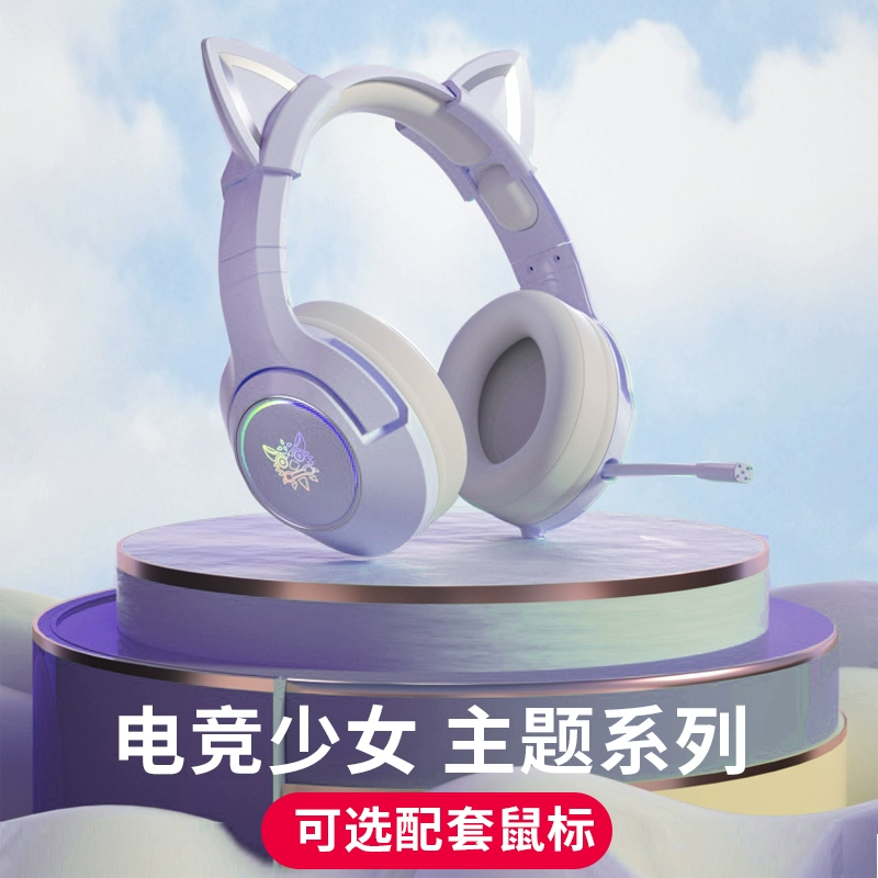 [دعم لوحة المفاتيح والماوس] Onikuma Cat Ear ، سماعات رأس الكمبيوتر مع سماعة ألعاب ألعاب القمح الأرجواني