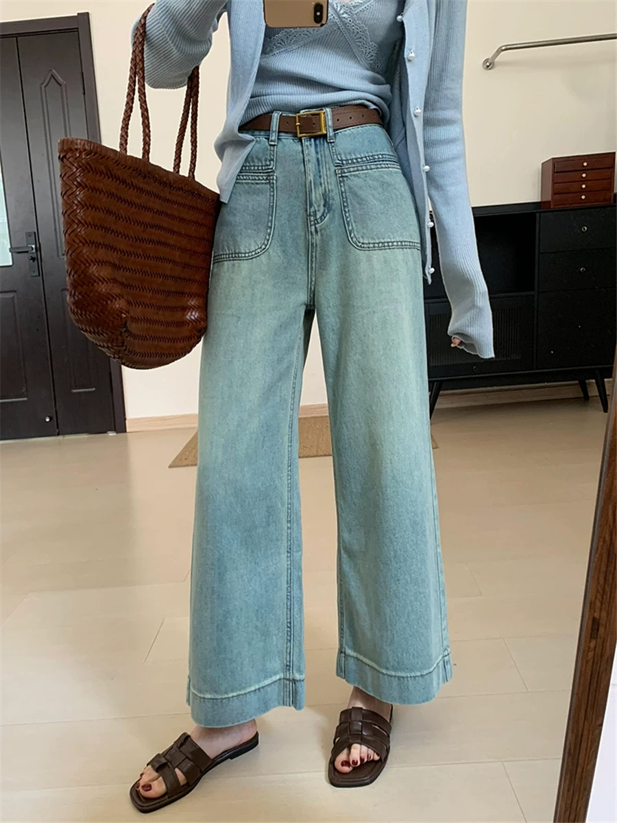 جينز كاجوال تاسع فضفاض بجيب عالي الخصر