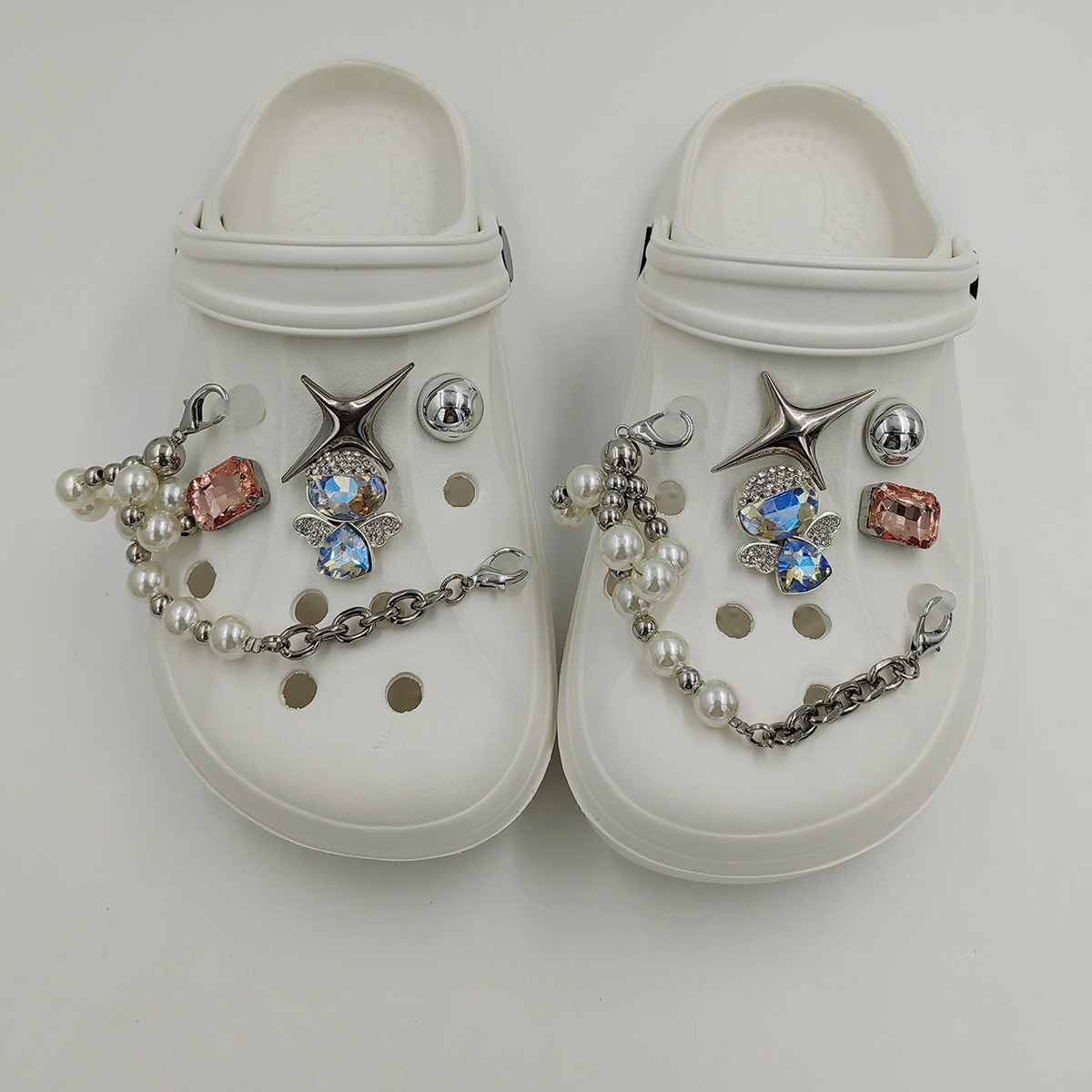 عبر الحدود ثقب جديد الأحذية الديكور حجر الراين اللؤلؤ النعال الملحقات إبزيم الحذاء الملحقات زهرة الملحقات معلقة سلسلة من الخرز زهرة