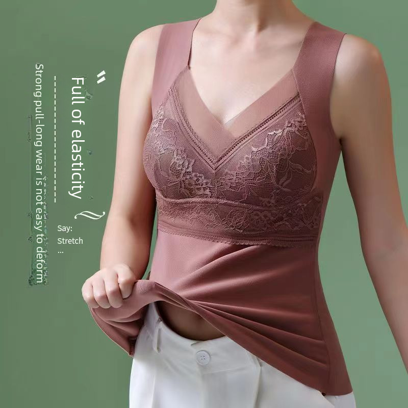 سترة نسائية من الدانتيل الحراري بدون خياطة للتدفئة من De Velvet، ملابس داخلية مريحة مبطنة بالصوف سميكة للتنحيف