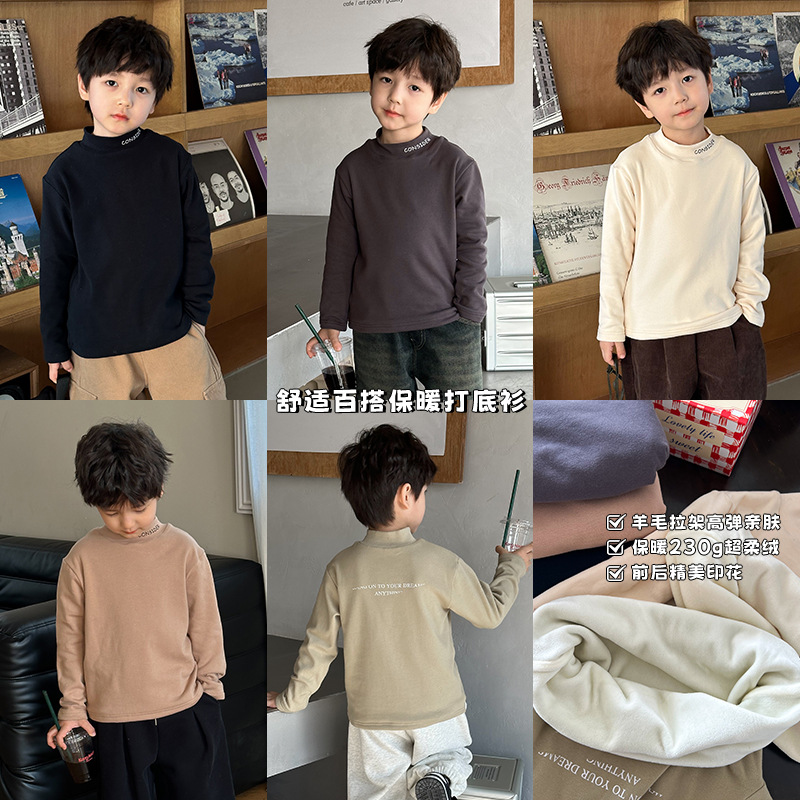 قميص للأطفال من Aimo Beibei مبطن بالصوف السميك ورف للسحب للأولاد والبنات، قميص علوي دافئ بياقة متوسطة للأطفال