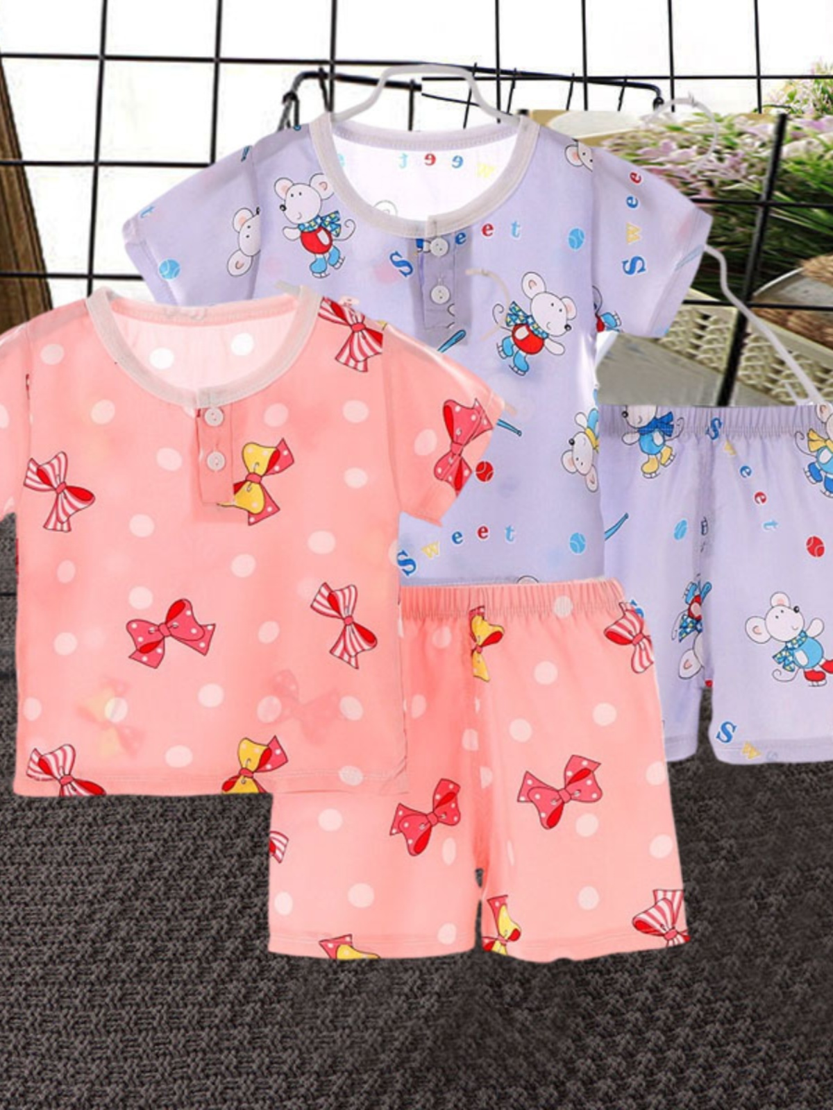 بيجامة صيفية رقيقة من القطن للربيع والخريف للفتيات بأكمام طويلة وخيوط قطنية للأطفال مناسبة لتكييف الهواء ملابس منزلية للأطفال