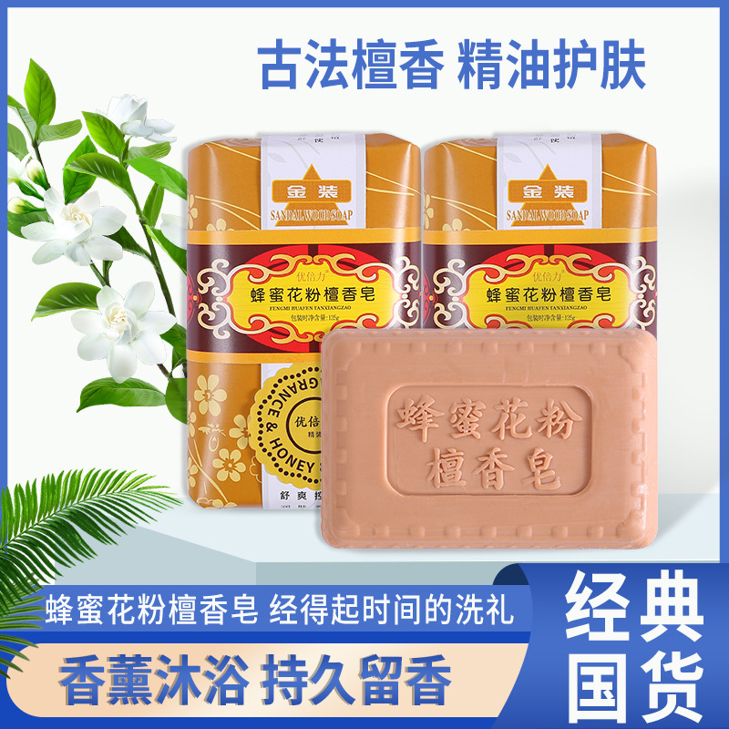 سلع أصلية صابون خشب الصندل وحبوب اللقاح والعسل 125 جرام تنظيف وترطيب العث وإزالة حب الشباب هدايا التأمين على العمل الصيني الرفاهية بالجملة
