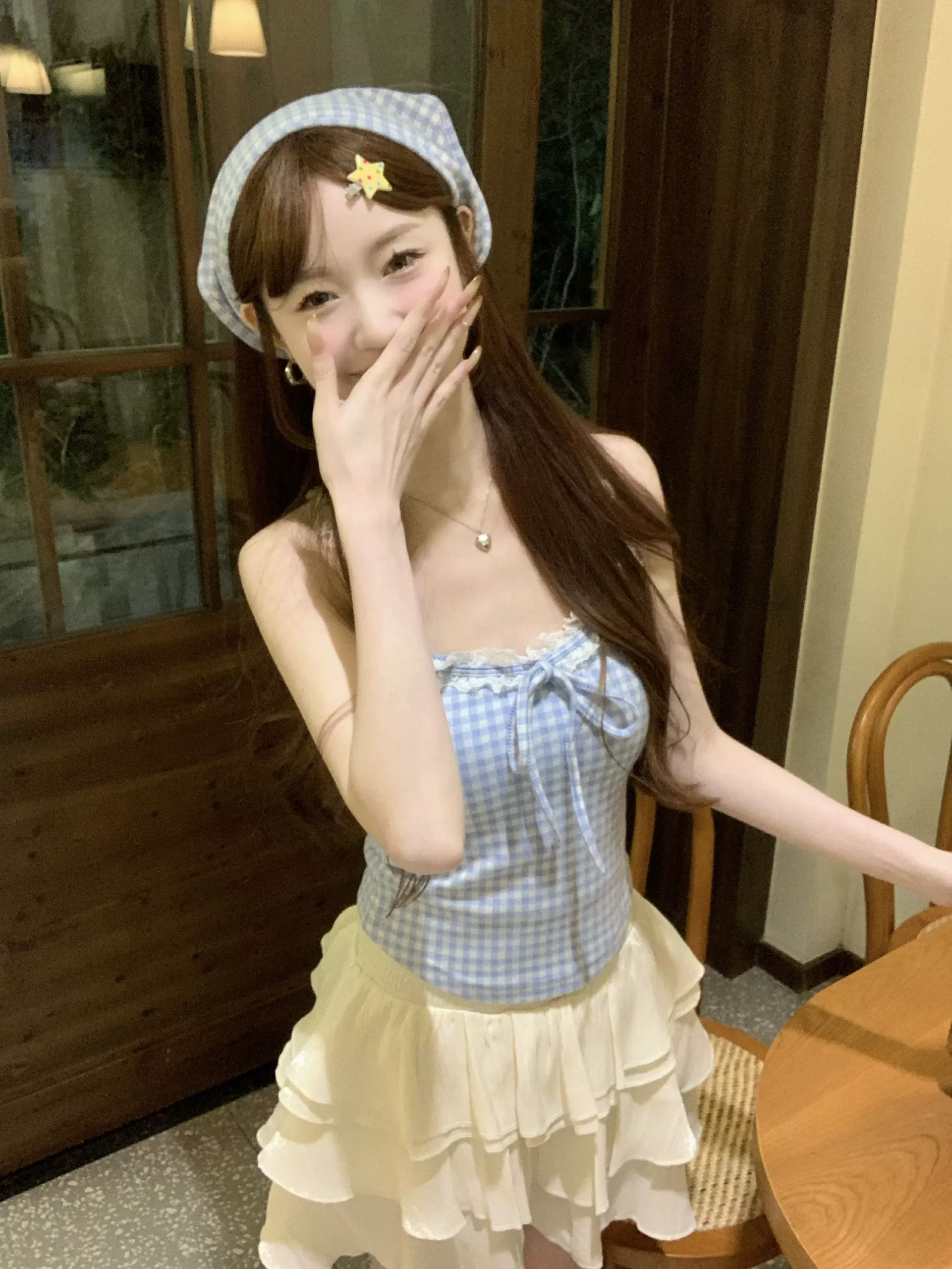 جمال مثير مع وسادة صدر للخلف معلقة Spice Girl مع سترة ملابس خارجية لتغليف الثدي مع قميص أساسي للطلاب