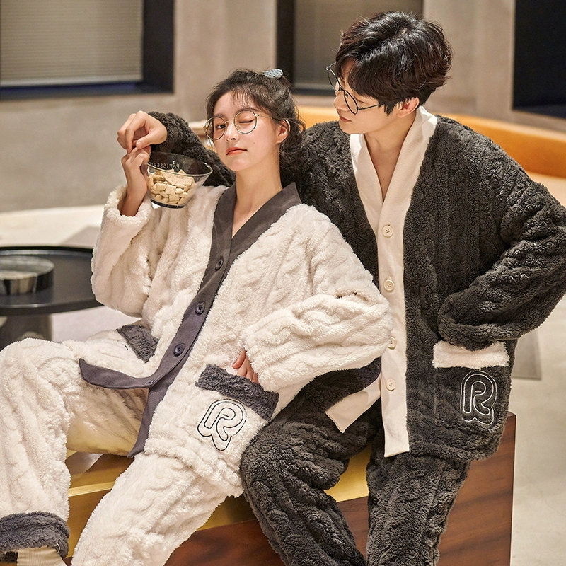 زوجين بيجاماس كورال المخملية الخريف والشتاء كارديجان للنساء الرجال الفانيلا بالإضافة إلى مصممة مخملية سميكة كيمونو المنزل