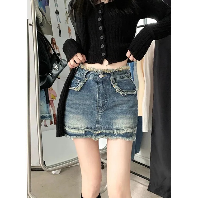 النمط الأمريكي الرجعية الدينيم تنورة المرأة الصيف الجديدة الساخنة فتاة الورك تنورة ألف خط تنورة قصيرة العصرية