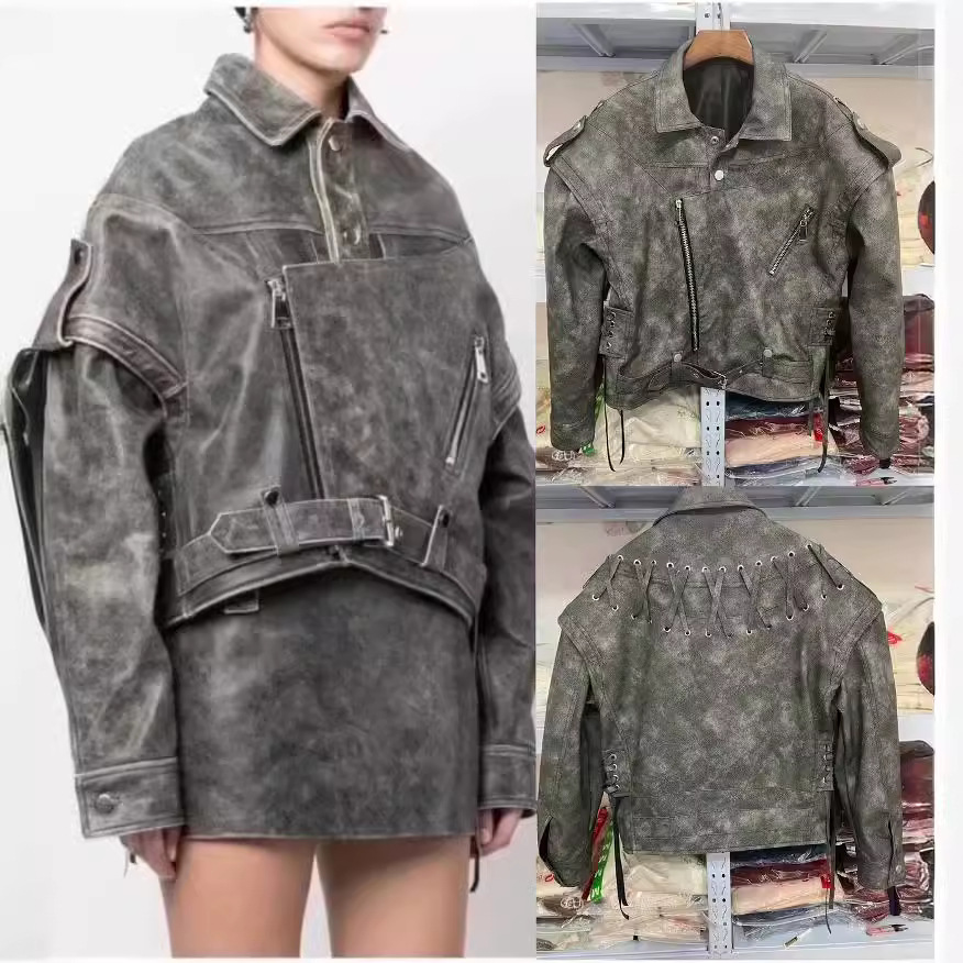مصنع المصدر للتجارة الخارجية للملابس النسائية . Z @ R سترة جلدية مقلدة ذات طية صدر السترة واسعة اللون مغسولة من Amazon AliExpress عبر الدائرة