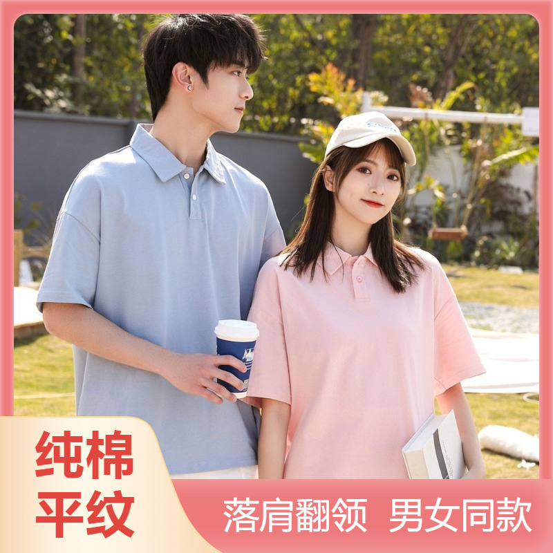 الدخان الأزرق/زهر الكرز الوردي زوجين عادي القطن قميص بولو قصيرة الأكمام الرجال والنساء فضفاض الكتف التلبيب تي شيرت