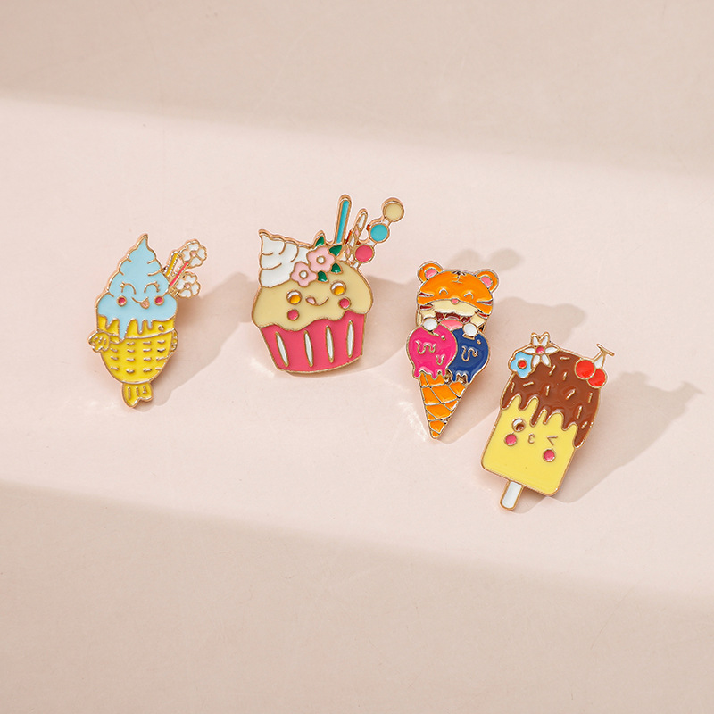 بروش كرتوني على الطراز الياباني والكوري، بروش معدني لطيف على شكل آيس كريم على شكل ذيل السمكة النمر للرجال والنساء على ظهره لتزيين الملابس