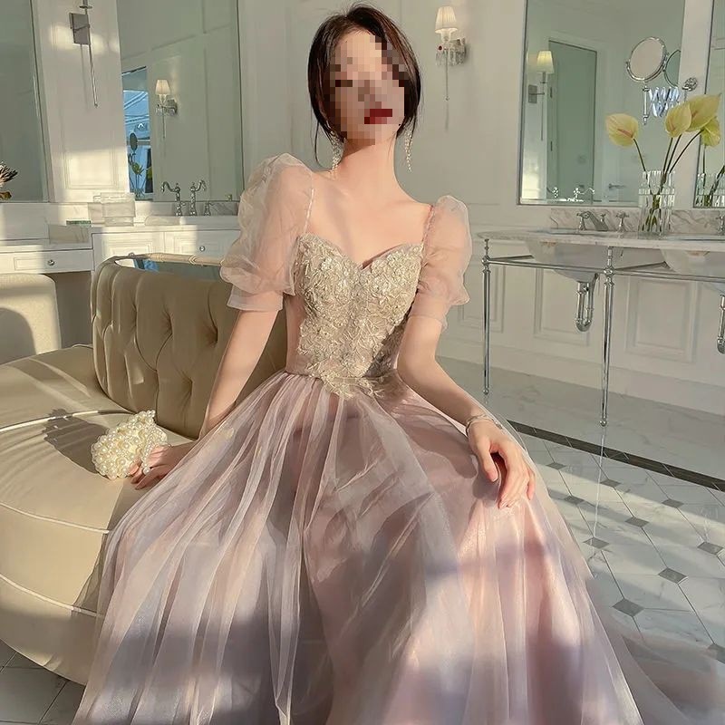 فستان غزل ملون طويل بدون أكتاف وأكمام قصيرة، امتحان فني للجمال، أداء منفرد، طالب يغني، تنورة نسائية