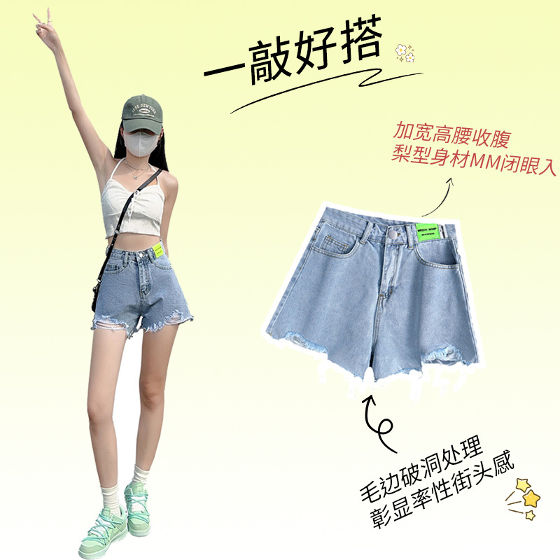 الجملة جيل ثقب الشعر الدنيم السراويل النسائية 2024 جديد الصيف الضوء الأزرق عالية الخصر تصميم السراويل الساخنة 2021