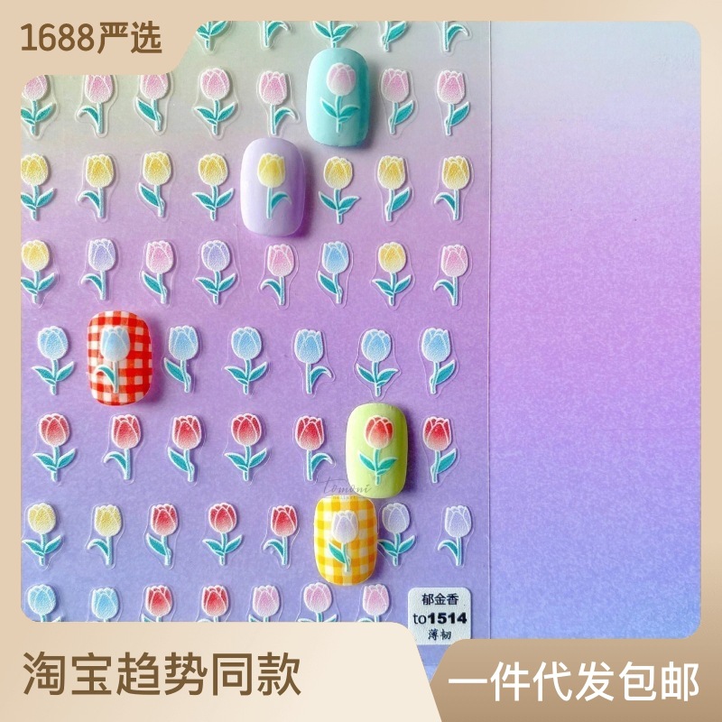 ملصقات أظافر لطيفة رقيقة ومتينة 1506 من Tomoni ملصقات أظافر يابانية لطيفة لاصقة خماسية الأبعاد توليب