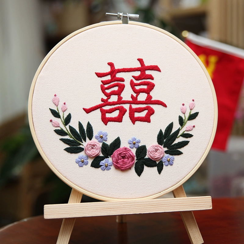 إصبع لو التطريز كلمة سعيدة DIY بها بنفسك تطريز يدوي حزمة المواد الزفاف التطريز فستان الزفاف زوجين التطريز ثلاثي الأبعاد