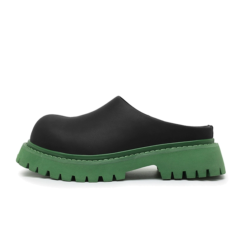 أحذية Mule ذات النعل السميك من العلامة التجارية Meng MENGPAI، أحذية ديربي متخصصة بنعل أخضر، أحذية غير رسمية نصف زلة لأصابع القدم، موديلات للرجال والنساء