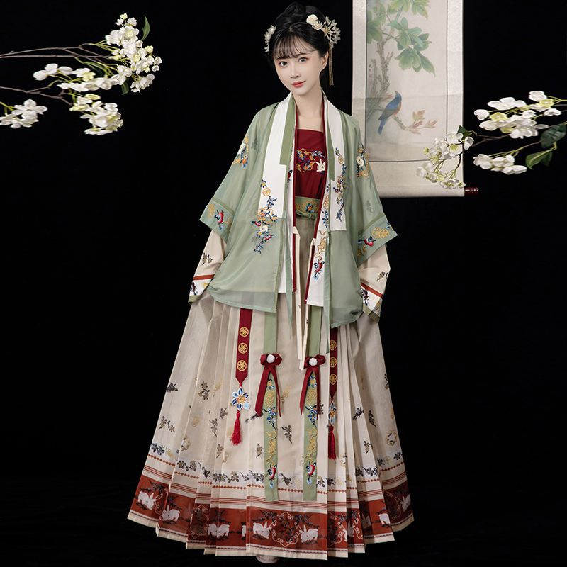 Weiyang Palace الأصلي Hanfu أنثى [زهرة الله أرنب] مينغ مطرزة نصف كم وجه الحصان تنورة الجنية الربيع والخريف