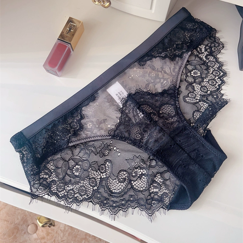ملابس داخلية من الدانتيل الفرنسية الأوروبية والأمريكية للنساء بحجم كبير منتصف الخصر مثير لا عطل شورتات النساء الرفيعة الرفيعة