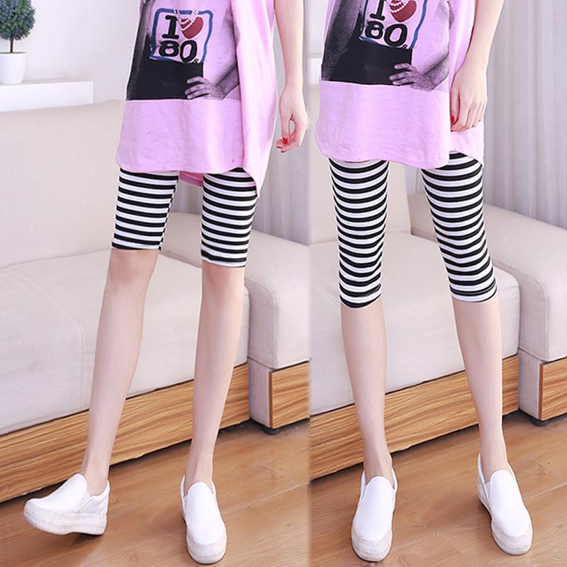 الصيف رقيقة لباس خارجي اقتصاص طماق المرأة حجم كبير تمتد منتصف طول السراويل الضيقة التخسيس مخطط اقتصاص طماق