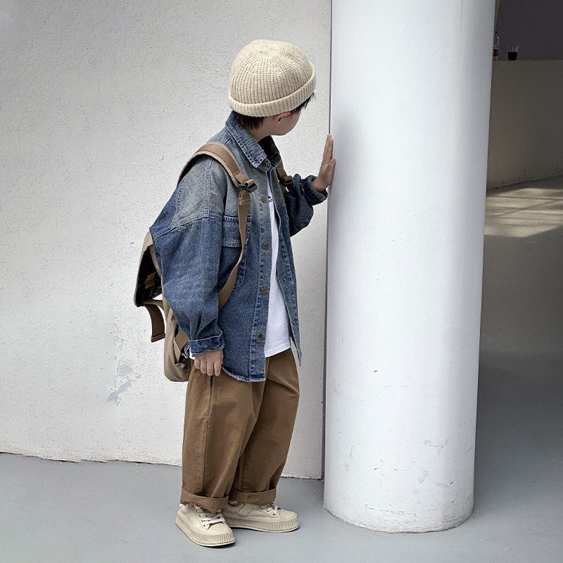 معطف قميص دينم للربيع للأولاد على شكل باندا مستدير 2024 ملابس أطفال جديدة للربيع والخريف بلوزة ربيعية رائعة للأطفال
