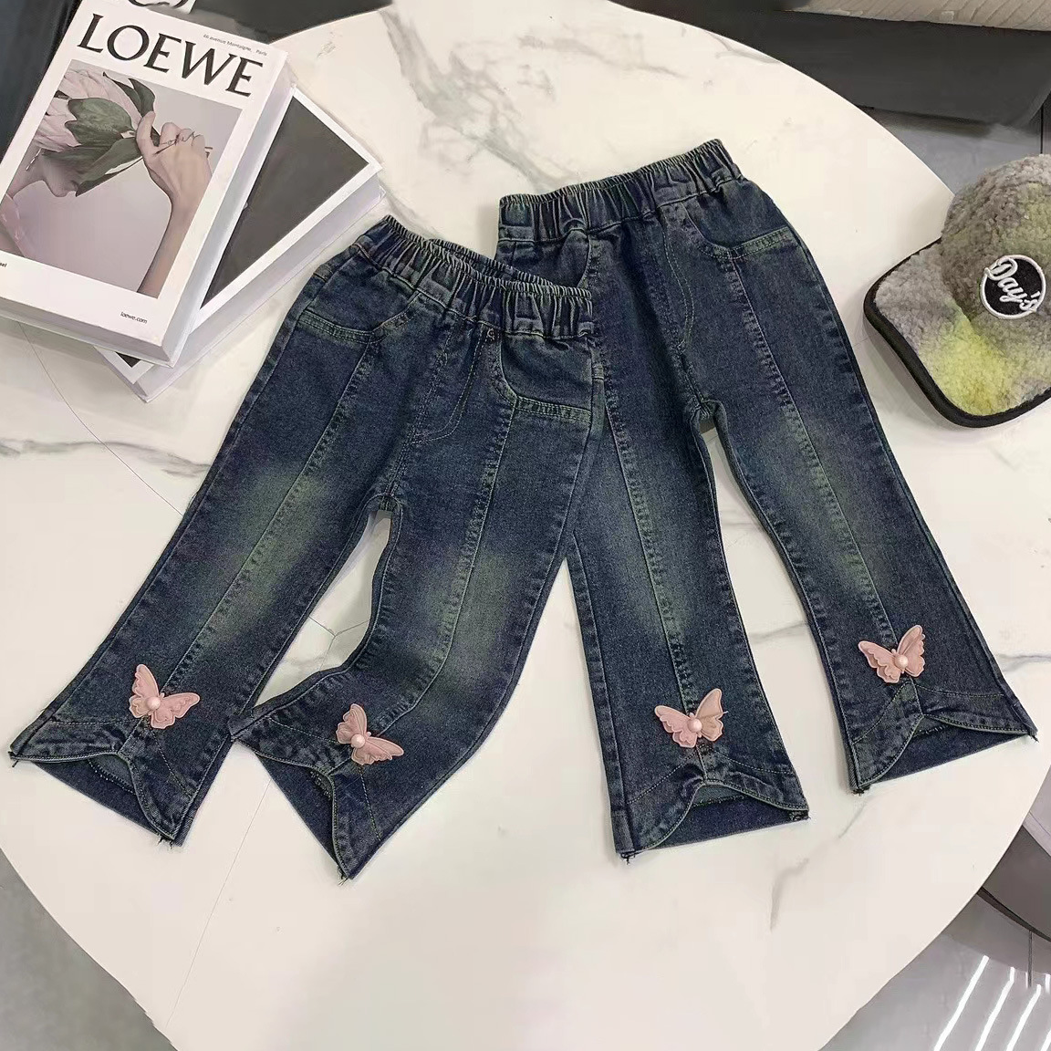 الخريف الفتاة السراويل الجينز الأنيقة للأطفال الكورية نمط عصري الأولاد الكرتون تمتد السراويل