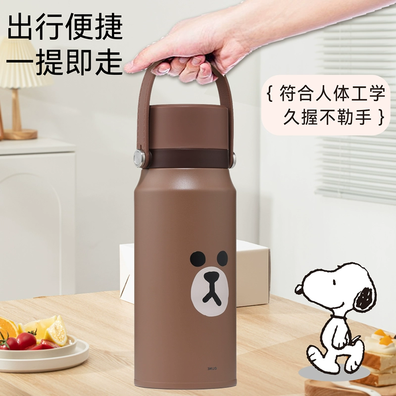 Line Friends Brown Bear Children’s Thermos Cup for Girls Primary School Tethings to School Food Grade Water Cup for Boys