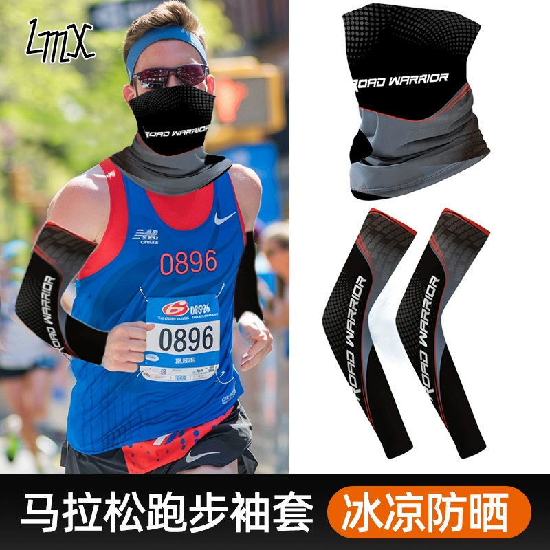أكمام ماراثون للجري، قناع الحماية من أشعة الشمس الصيفية، مجموعة من قطعتين، أكمام ثلج من الحرير الجليدي، أكمام رقبة لركوب الدراجات، واقيات للرقبة وواقيات للذراع متوفرة في المخزون