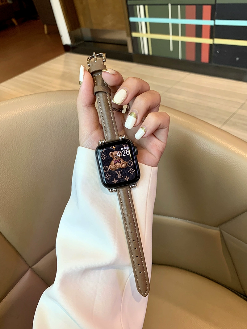 ينطبق على IWATCH 7 حزام من جلد رفيع الفتاة الاتجاه الاتجاه ins Simple Apple Watch 6 Apple Watch 51234SE حزام جلدي أصلي صغير 38/4240/44/41/45 ملم