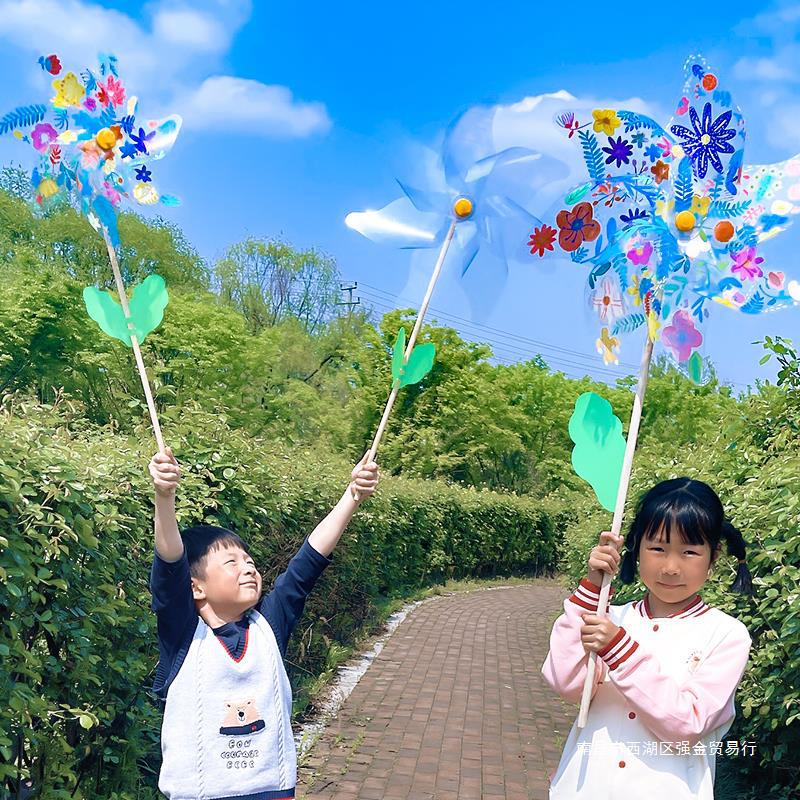 طاحونة هوائية مصنوعة يدويًا من مادة PVC شفافة دوارة طاحونة كبيرة لرياض الأطفال لتزيين طاحونة هوائية صغيرة محمولة باليد في الهواء الطلق