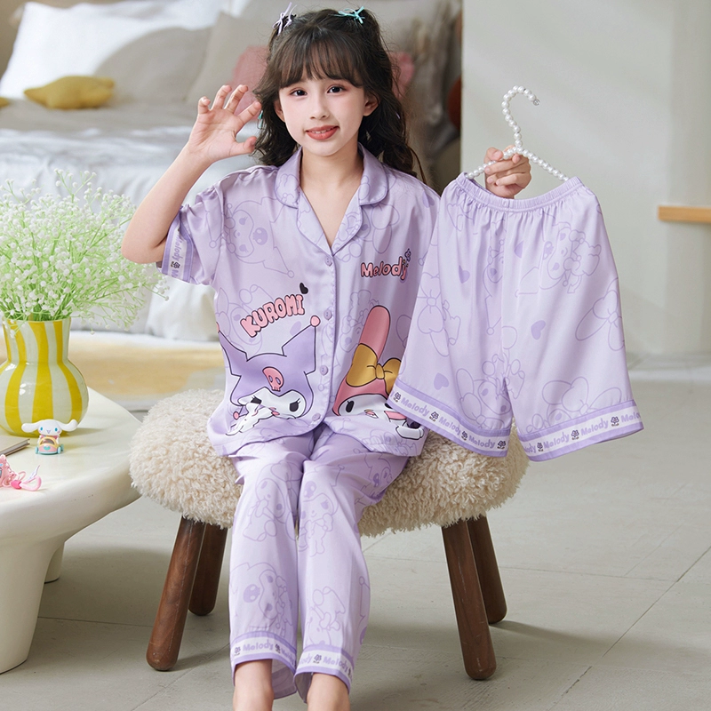 الفتيات بيجاماس الصيف الجليد الحرير رفيع الأطفال curomi ثلاثة -مجموعة الأميرة فتاة قصيرة -سراويل سراويل.