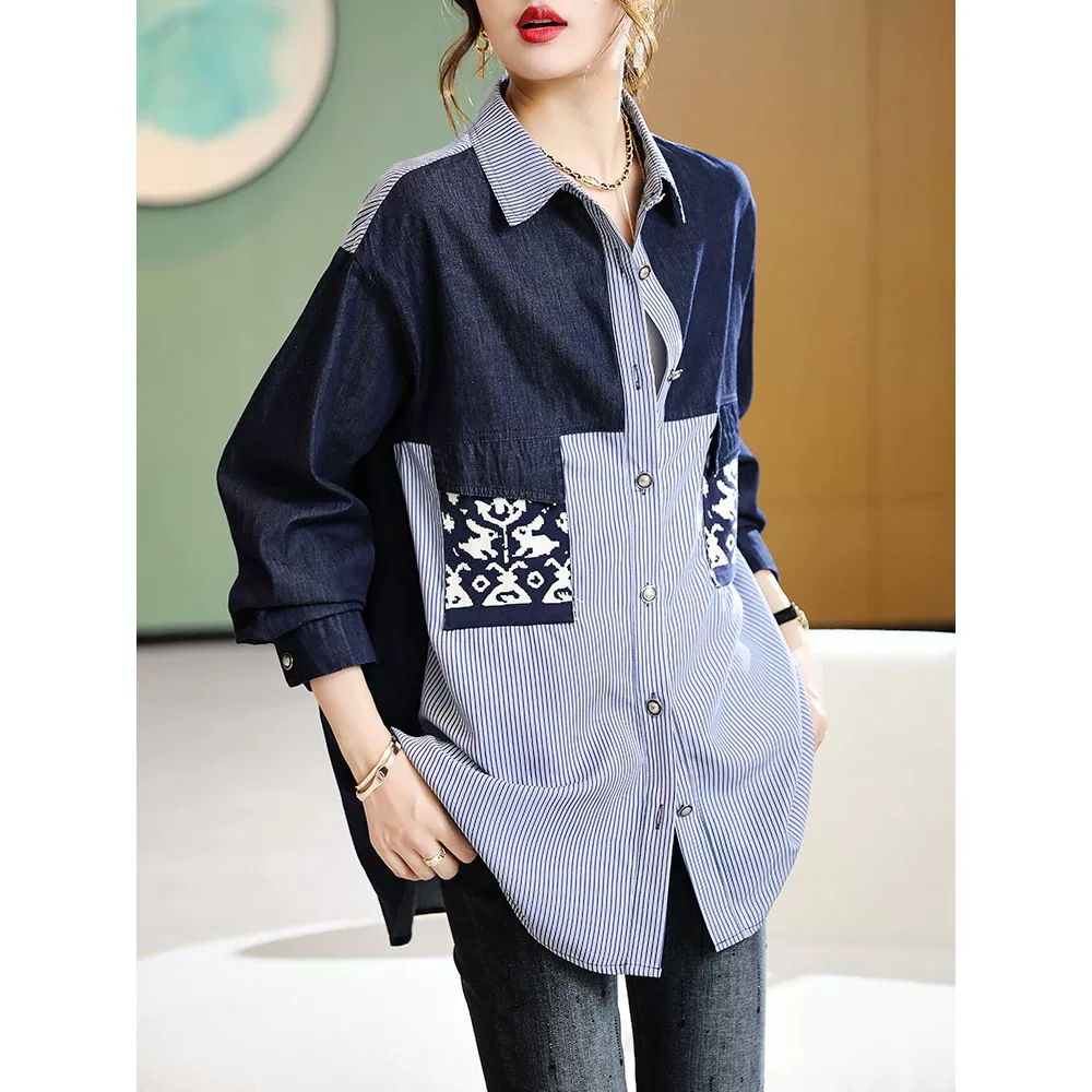 محطة أوروبية كبيرة الحجم فضفاضة متناقضة قميص مخطط