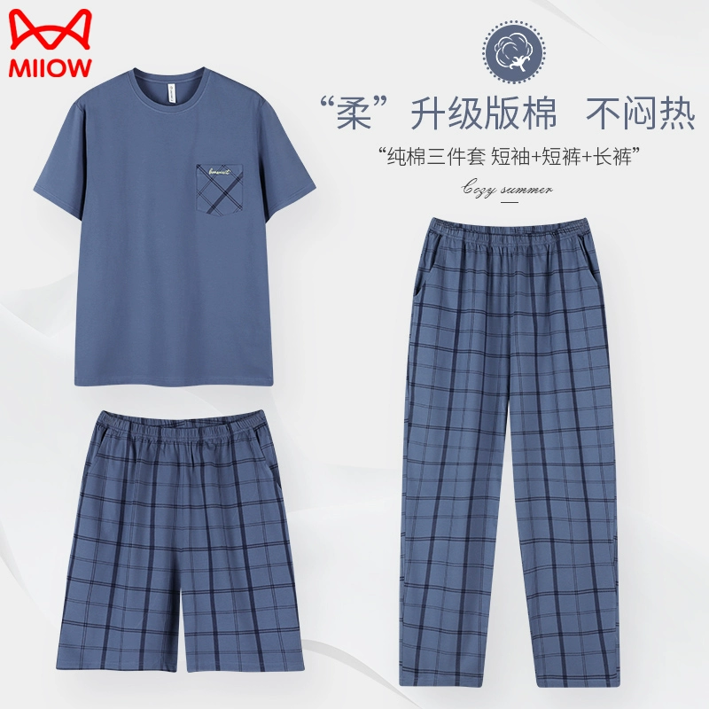 رجال القطن النقي النقي قصير الأكمام من ثلاث قطع صيف أبي بيجاما
