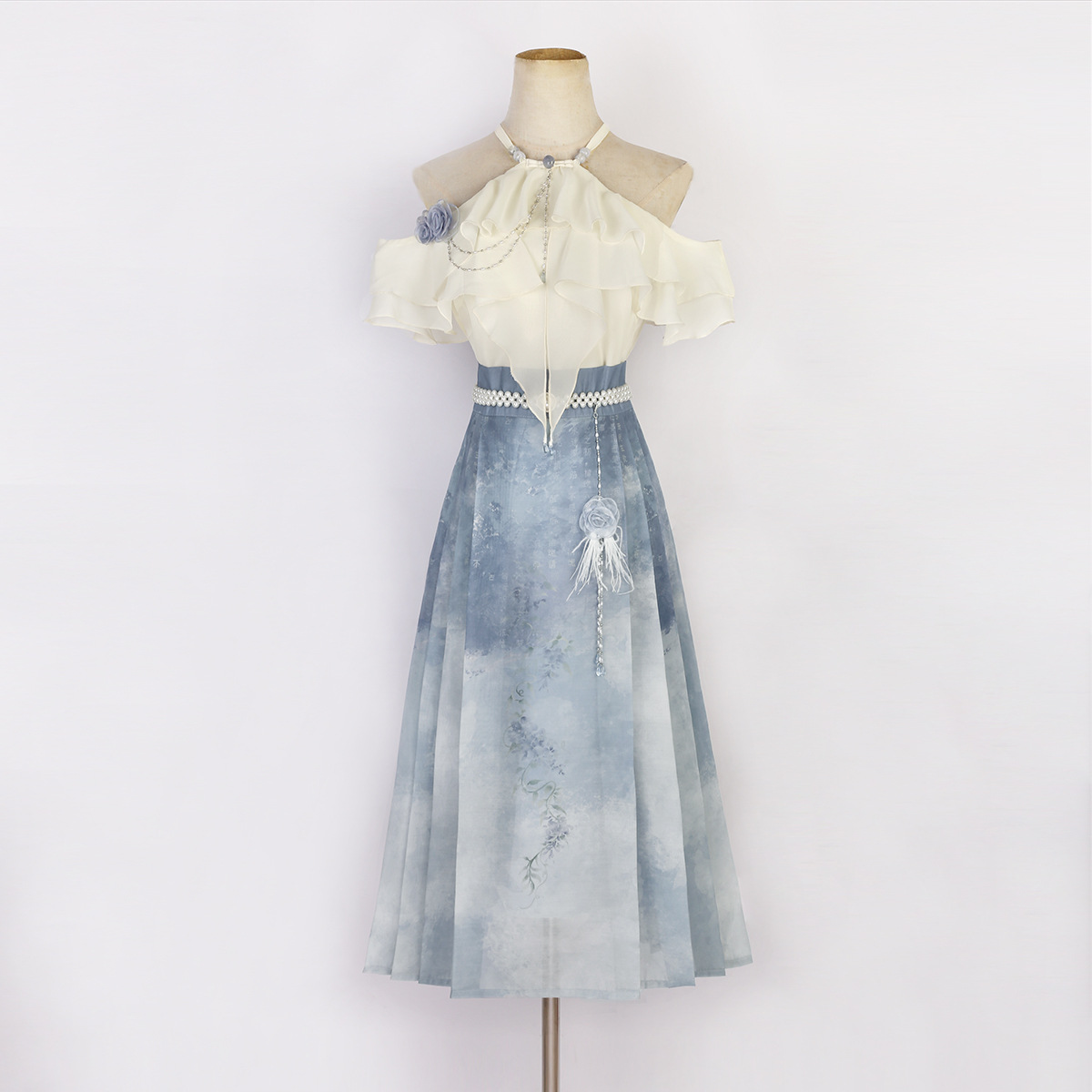 حزام كتف مطوي ، ثديي النحيف ، عقدة تنورة تنورة