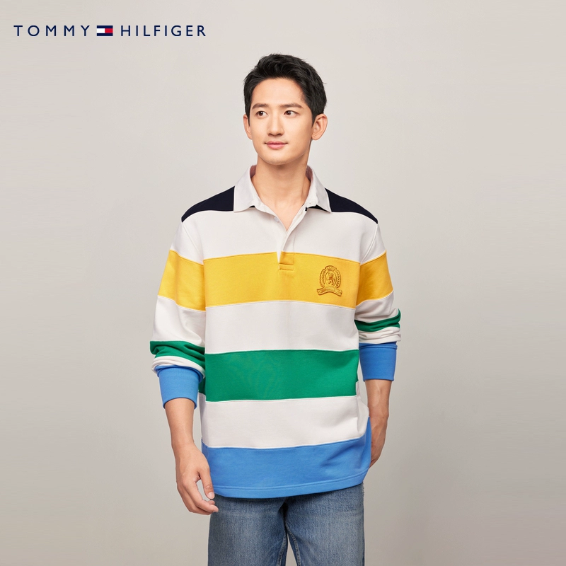 مجموعة Tommy Hilfiger Collection24 سويت شيرت رجالي جديد للربيع والصيف من القطن الخالص بلون مطابق بياقة بولو 34327