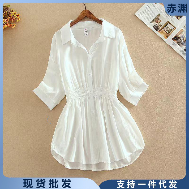 قميص شيفون المرأة الأعلى 2024 فستان صيفي تقليد قميص فضفاض تصميم تحسس سوبر الجنية البطن تغطي الخصر النمط الغربي قميص صغير