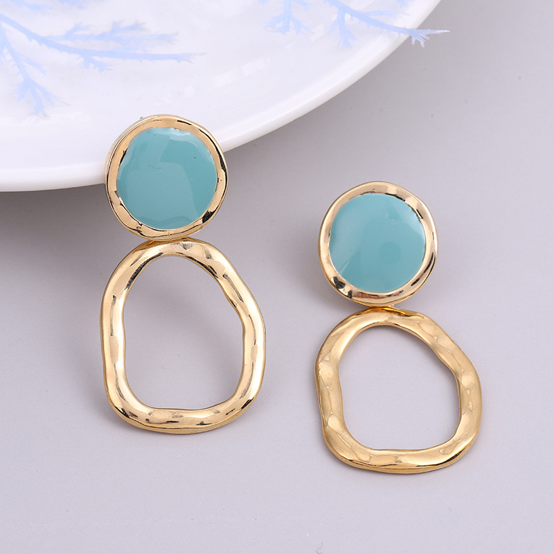 أقراط نسائية أوروبية وأمريكية من سبيكة مستديرة مطلية بالذهب على شكل قطرة زيتية راقية على شكل حلقة بيولوجية فاخرة
