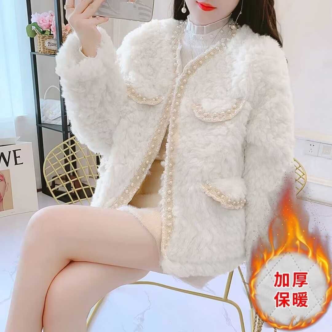 معطف صوف خروف للنساء 2024 جديد لخريف وشتاء شانيل نمط مزاجه عصري مناسب تمامًا للقطن وطبقة علوية دافئة سميكة