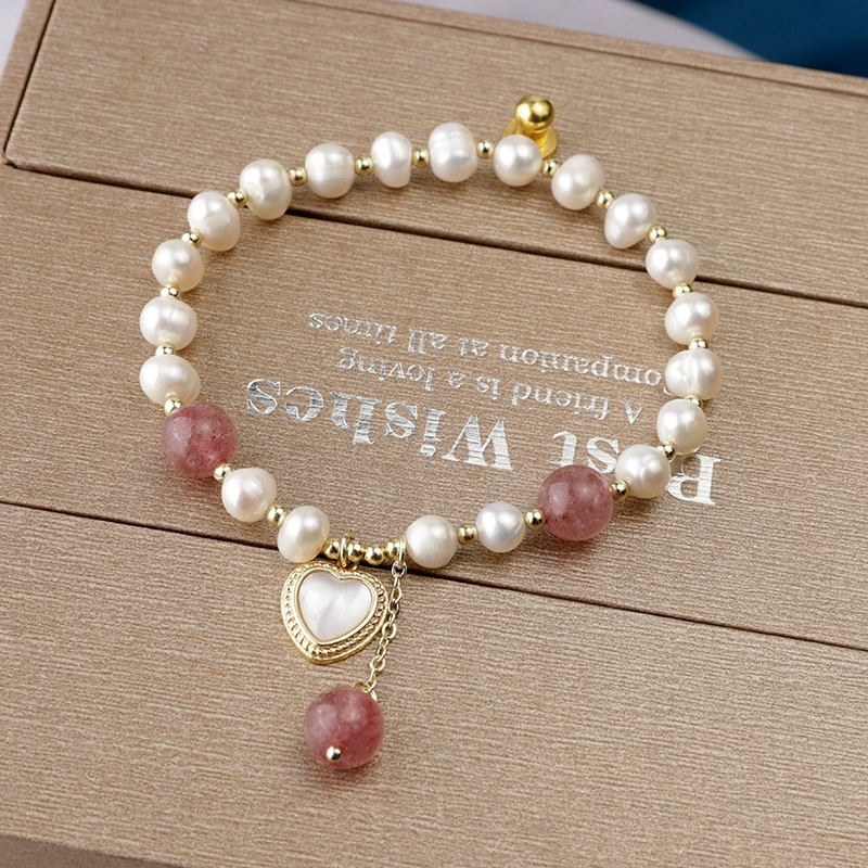 سوار من اللؤلؤ الطبيعي للنساء بتصميم متخصص سوار من عرق اللؤلؤ والفراولة والكريستال وزهر الخوخ على الإنترنت مجوهرات يدوية للمشاهير