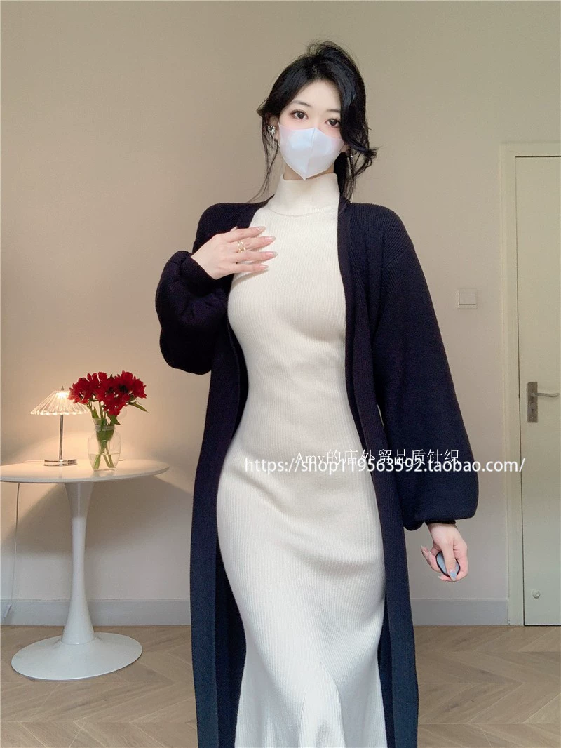 الخريف والشتاء مزاجه فضفاض معطف منتصف طول سترة محبوكة