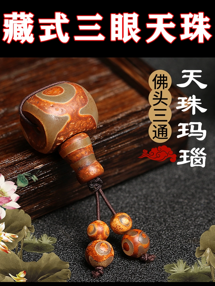 Tibetan Three -eed Dzi Agate Three -Way -Way Buddhist Head مجموعة King Kong Moon Bodhi Wallet Club Associory