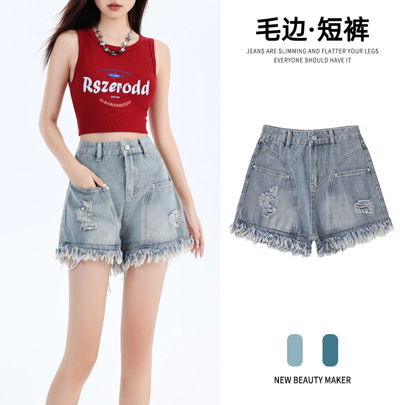 بالإضافة إلى حجم الرجعية عالية الخصر المألوف شرابة هامش الدنيم السراويل النسائية الصيف الجديدة التوابل الفتيات نظرة سليم السراويل واسعة الساق