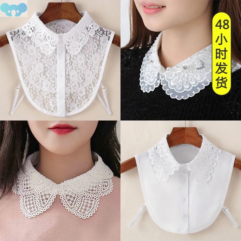 طوق مزيف من الدانتيل المطرز باللون الأبيض للنساء متقاطع